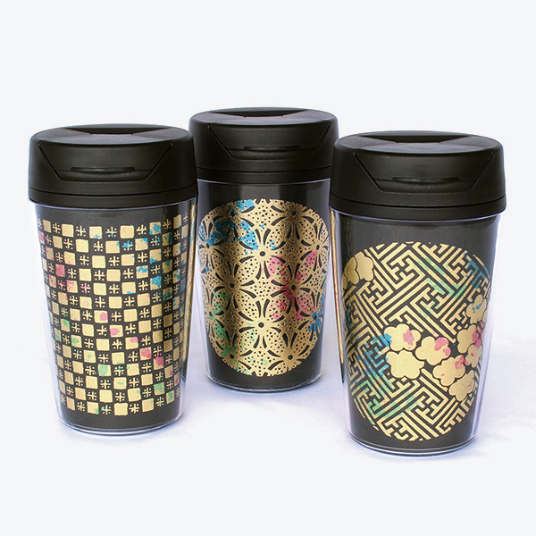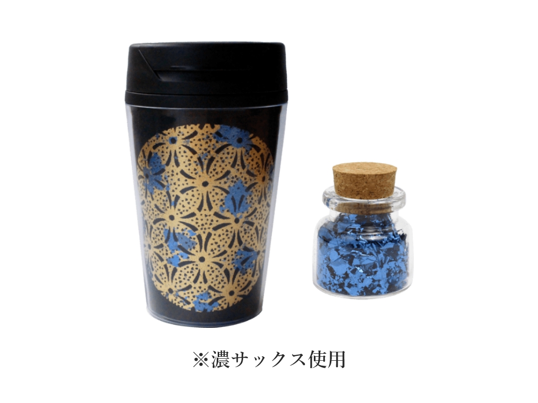 本店での金箔貼り体験では、タンブラーやステンレスボトルのデザイン台紙に金箔を貼って、世界にひとつだけのオリジナルアイテムを作ることができます。